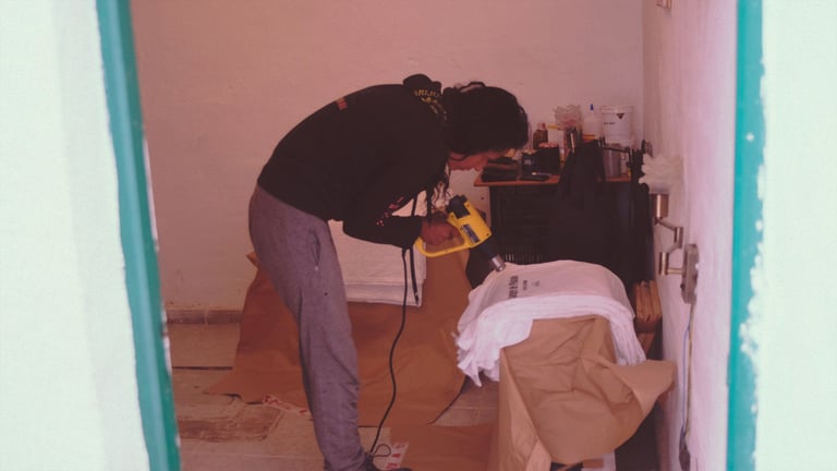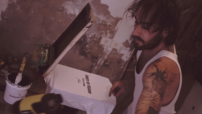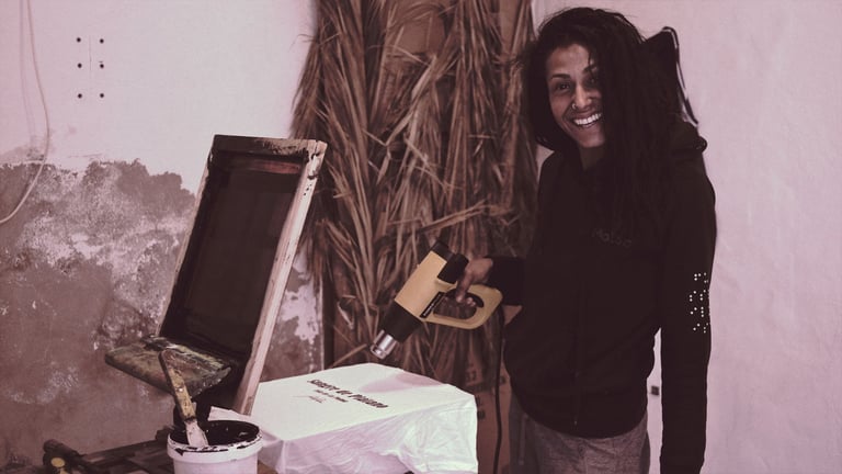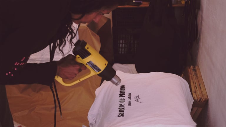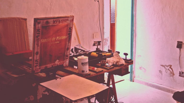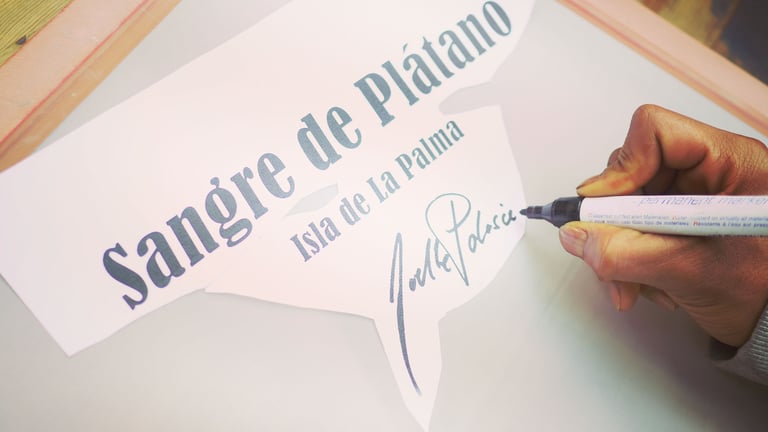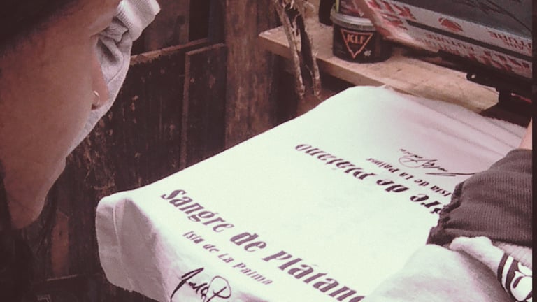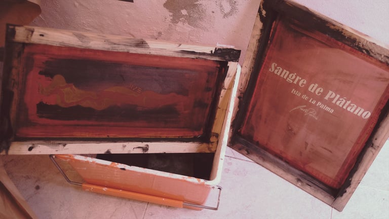 Una vez hechas las serigrafías las llevamos a La Palma y aquí llega la magia de Joel