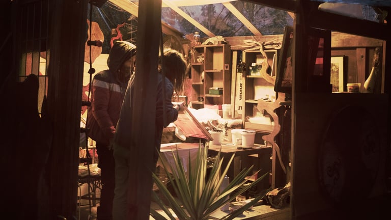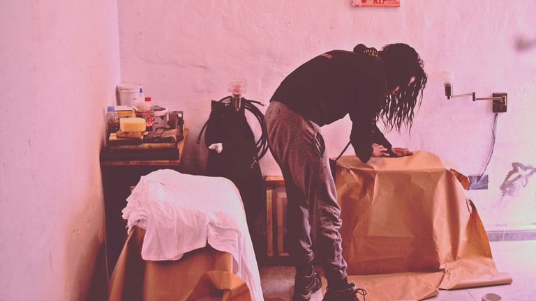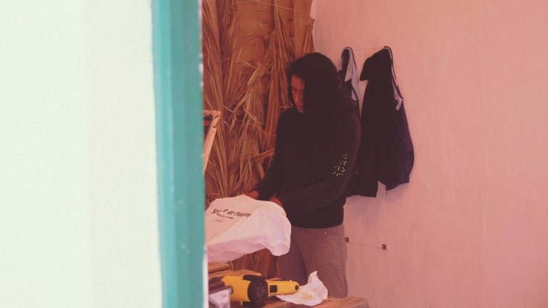 Durante la temporada de recogida del plátano canario, se desplaza a uno de los plataneros, aquí es donde monta su taller.