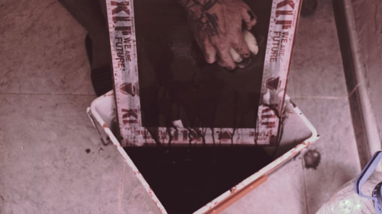 Los troncos cortados de los plataneros emanan un líquido rojizo y su y formas fractales de Sangre de Plátano, únicas y permanentes al tiempo que Joel Palasie ha descubierto, explorado y eternizado.